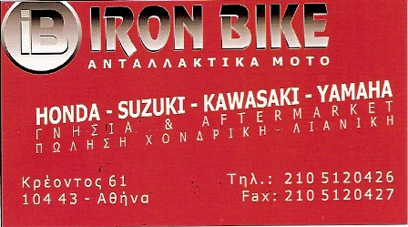 Το Iron Bike προσφέρει εως 15 % πραγματική έκπτωση στα μέλη του Motocikleta.Gr ( με επίδειξη της ταυτότητας μέλους ) και συγκεκριμένα :