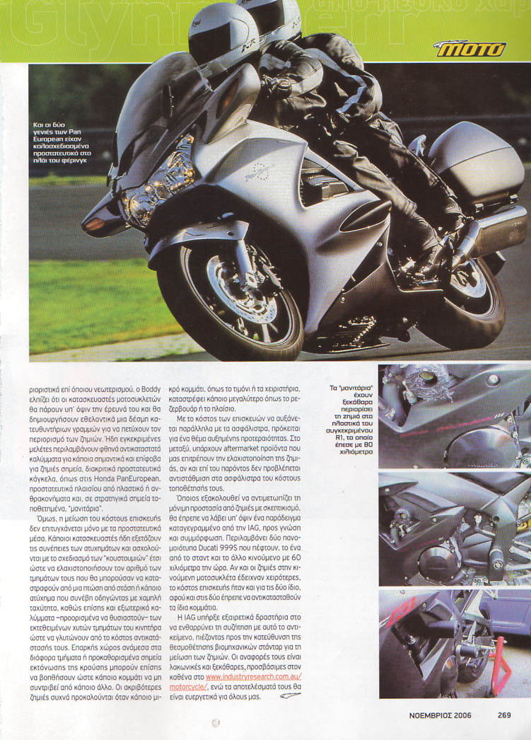 Εγω ευχομαι οι ασφαλιστηκες που αναφερει καθως και οι κατασκευαστριες εταιρειες να ασχοληθουν πραγματικα με το θεμα μιωσεις των σημιων σε περιπτωση πτωσης της μοτοσυκλετας προς οφελος μας και οχι μονο και μονο προς οφελος της τσεπης του και το θεμα μηνει εκει.