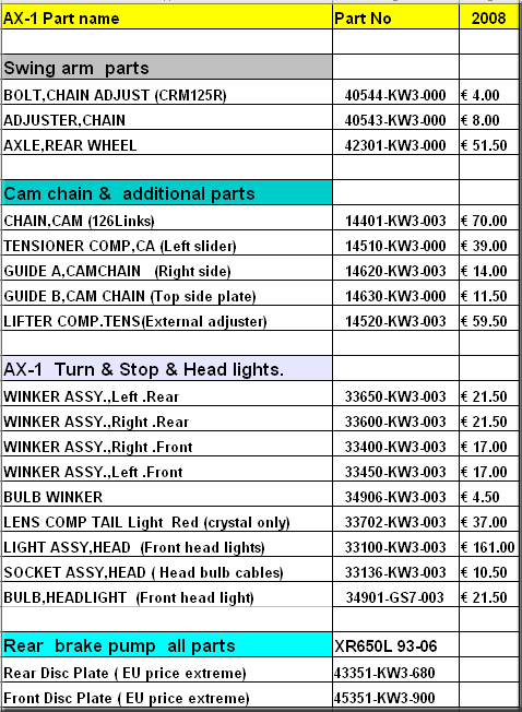 Μιλάμε για του κωδικούς ανταλλακτικών Honda , όπου υπάρχουν σήμερα στην Ευρώπη,