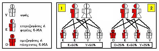 Η πιθανότητα απόκτησης παιδιού με β-ΜΑ υπάρχει ΜΟΝΟ όταν και οι δύο γονείς είναι ετεροζυγώτες της β-ΜΑ, ή όταν ο ένας από τους δύο είναι ομοζυγώτης και ο άλλος ετεροζυγώτης.
